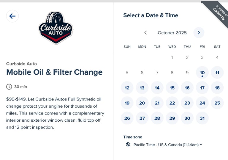 Our quick and clean oil changes will protect your engine for thousands of miles. With Curbside Autos no mess guarantee, you won't even be able to tell we were there.
