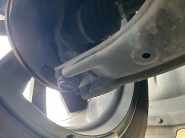 Ball joint failure is more dramatic. A worn ball joint allows the wheel to move in ways it shouldn't. In extreme cases, a ball joint that separates completely, the wheel tilts outward and you lose control. That's why we don't soften how we talk about these: inspect them, replace them when worn, and don't wait on it.